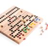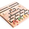 The colorful, wooden board folds in half to hold all playing pieces internally when not in use – which also makes for easy travel!