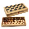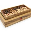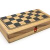 The wooden board for the set of 3 games folds into half to hold all pieces inside for safekeeping – perfect for easy travel!