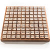 Our simply designed Multiplication Table is an enriching, educational toy that helps kids memorize the multiplication of any two numbers from 1 through 10. 100 blocks total sit comfortably in a carved out space on the board. The front face of each block contains the first half of an equation, such as “2 x 3” or “4 x 9”, and the back side of each block reveals the answer. Children can use the blocks to test themselves, and then receive the immediate gratification of checking to see if they got it right – just lift up the cube. Kids can teach themselves and have fun along the way!